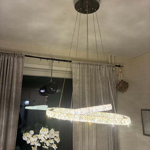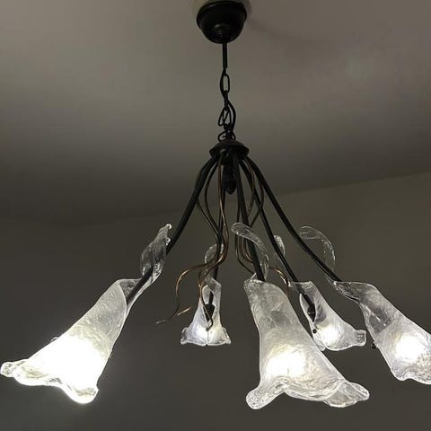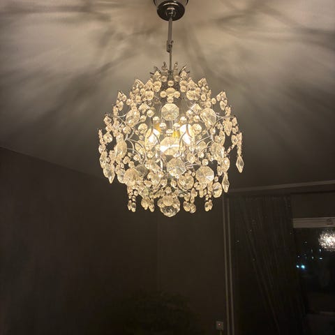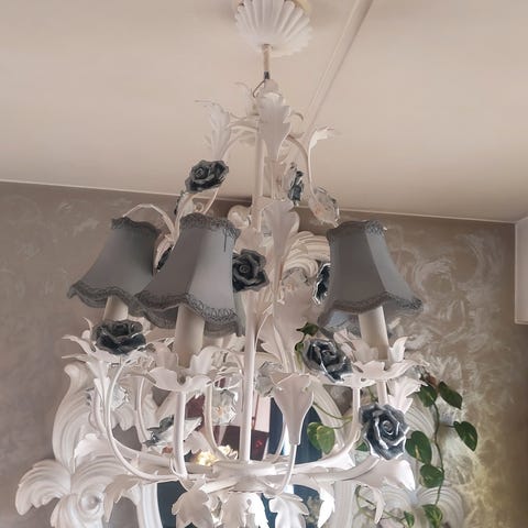 Grönaktig smideskrona med varmt ljuvligt ljus. Dimbar