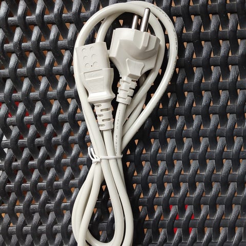 strömkabel med en Schuko-kontakt i ena änden och en IEC C13-kontakt i den andra.