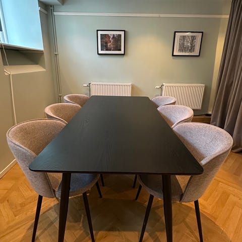 Stort matbord med stolar