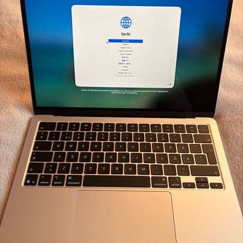 Apple Macbook bärbar dator. Datorn är en laptop med inbyggt tangentbord och styrplatta. Färgtonerna på datorerna på bilderna är främst silver och vit. Lämplig för allmän datoranvändning som webbsurfning, kontorsarbete och enklare mediakonsumtion beroende på specifik hårdvara och skick, vilket inte framgår av uppgifterna. Ingen ytterligare teknisk information om modellår, skärmstorlek, lagring eller minne finns angiven.