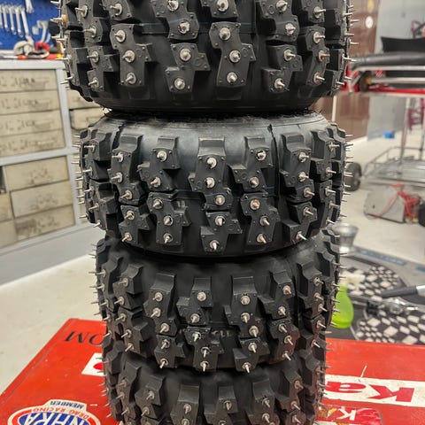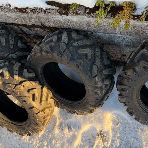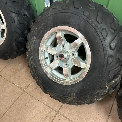 Däck med fälg för terrängfordon. Grovt mönstrade däck med nya pyramiddubbar. Levereras monterade på fälg, vilket underlättar byte på fordonet. Lämpliga för användning där extra grepp i lera, grus eller ojämn mark behövs. Ring 0708393617