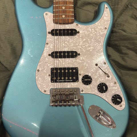Säljer nu min Schecter C-1 SGR då jag är i behov av pengarna. Funkar utmärkt att spela på, finns lite repor som man ser på bilden.