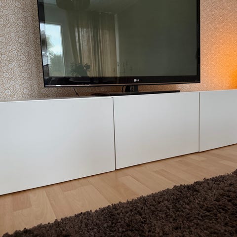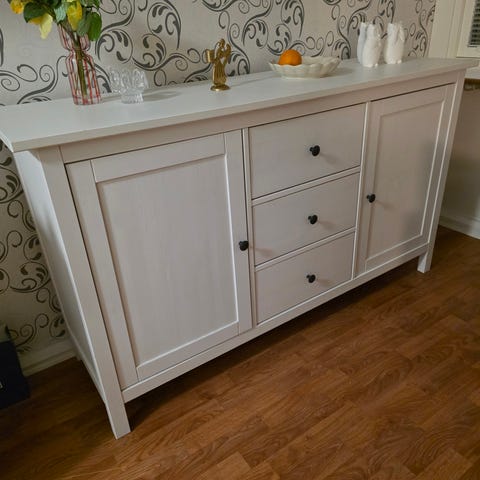 Långt skåp/skänk byggt på 5st köksskåp och toppskiva som går att byta ut om man skulle vilja.
