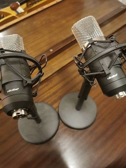 Svarta kondensatormikrofoner för ljudinspelning, sång, instrument och podcast.