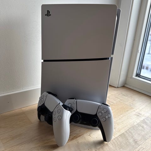 Sony Playstation 5 spelkonsol i vit färg. Stationär konsol med originalkartong enligt bild. 2 handkontroller,gummigrepp och laddstation för 2 kontroller. Konsolen är avsedd för hemmabruk och kan användas för spel, film och andra multimediafunktioner som stöds av Playstation 5-systemet.