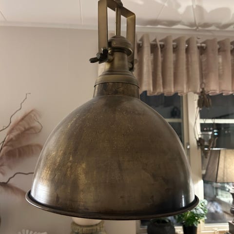 Vi säljer vår fina, danska taklampa i koppar. 60- eller 70-tal, design: Olle Malm. Lampan fungerar bra och har inga synliga fel.