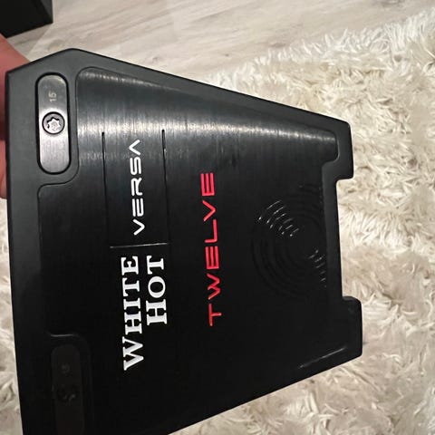 Odyssey golfputter med vitt grepp och metallskaft. Putterhuvud med två siktrundlar för enklare linjering vid puttning. Passar för golfspelare som söker en klassisk putter med tydlig siktlinje för användning på green.