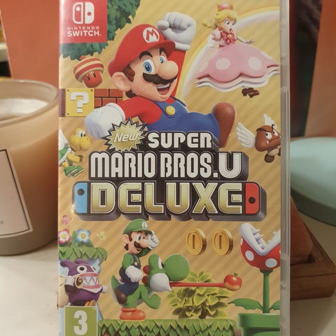 Super Mario Bros. U Deluxe spel för Nintendo Switch. Fysiskt spelkort i originalfodral. Plattformsspel där spelaren styr Mario och andra figurer genom olika banor. Stöd för både enspelarläge och flerspelarläge lokalt på samma konsol.