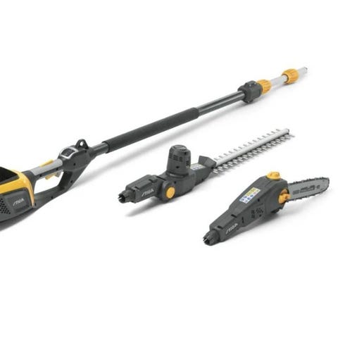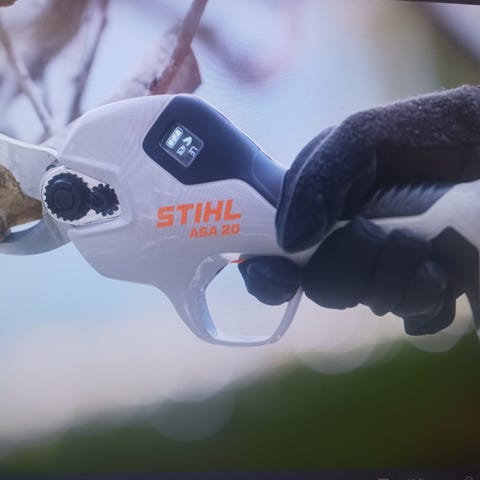 Batteridrivet verktyg som kan användas både som grässax och mindre häcksax för trimning av gräsmattor, kanter och buskar.