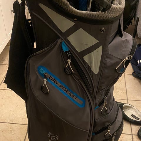 Cobra golfbag i blå färg. Väskan har flera fickor med dragkedja för förvaring av golfbollar, peggar och tillbehör. Utrustad med bärremmar och handtag för enklare transport. Går både att bära men även ha i en golfvagn! Alla fickor och dragkedjor är i perfekt skick.