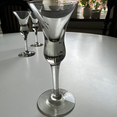 Holmegaard karaff med två snapsglas med julmotiv. Setet består av en större karaffel med korkpropp samt två mindre glas. Både karaffel och glas är dekorerade med vinter- och julmotiv med människor och träd. Passar för servering av exempelvis snaps, likör eller andra drycker vid högtider och dukning med säsongstema.