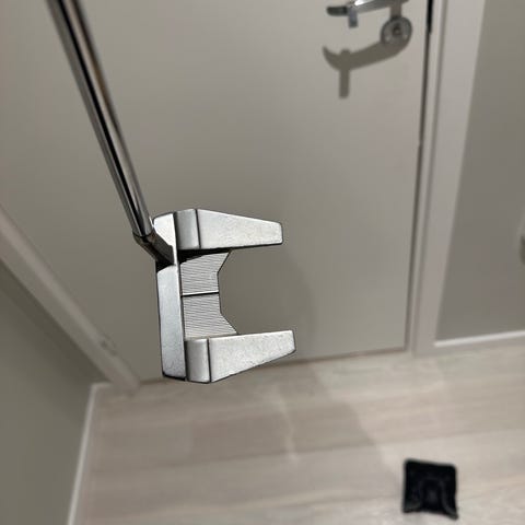 Odyssey White Ice 2-Ball putter i metall med stålskaft. Putterhuvud med 2-ball-sikte och White Ice-insert på träffytan. Grepp från Odyssey. Headcover medföljer enligt bild tillsammans med mindre tillbehör. Avsedd för golfspel på green.