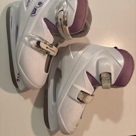 Modellen har hårt ytterskal med justerbara spännen över fot och vrist för stabil passform.