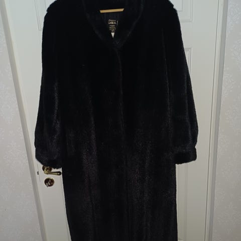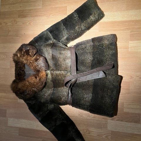& Other Stories pälsjacka för dam i storlek M. Jackan är svart och tillverkad i pälsmaterial med knäppning framtill och knytskärp i midjan. Modellen har fickor fram och ett färgstarkt, mönstrat foder på insidan. Passar som ytterplagg vid svalare väder