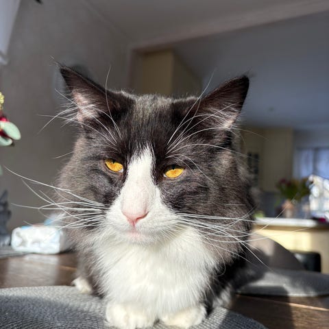 Ozzy är en blandning mellan Ragdoll/Norsk Skogskatt så han är fluffig i sin päls :)