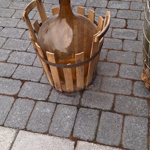 En stor dammejeanne, stått i förrådet så damm finns 😅 torkar givetvis av innan köp. Postar ej denna pga dess storlek.