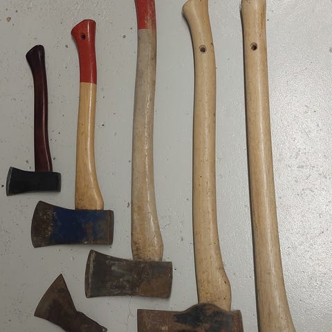 Ett antal Filar eller Raspar, två med löstagbara ( har inte kunnat lossa med handkraft ) skaft. Resten är som synes utan hantag men är kompatibla. Ej använda utan bara förvarade med något mer eller mindre synlig ytrost.