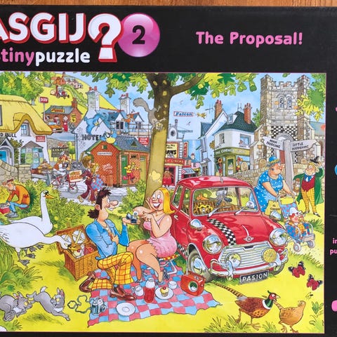 Jumbo Wasgij Original 45 Moving Day pussel. Motiv med flyttdag i stadsmiljö. Pussel med flera detaljerade figurer och byggnader, lämpligt för pusselentusiaster som vill ha en illustrerad scen att lägga. Antal bitar framgår av förpackningen.