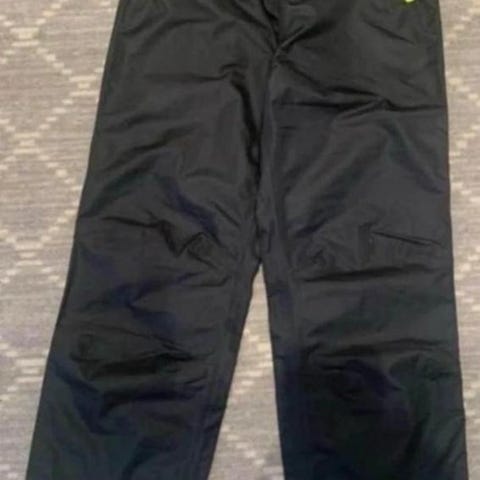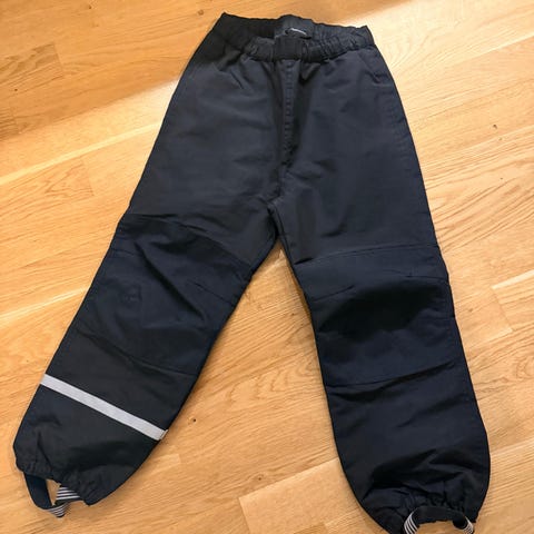 Lindex Rain Wear regnbyxor för barn i unisexmodell. Storlek 146-152 (ca 10–12 år), men de är lite små i storleken. Färg svart. Material i polyester. Byxorna har resår i midjan och nedtill vid bensluten samt justerbar dragsko i midjan. Reflexdetaljer finns runt ena benet. Passar som regn- och överdragsbyxor vid utomhuslek och aktiviteter i vått väder.