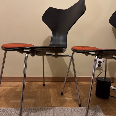 Fritz Hansen Series 7 stol formgiven av Arne Jacobsen. Skalstol i vit färg med ben i kromat stål. Stapelbar modell som passar till matbord, skrivbord eller som extra sittplats i hem- eller kontorsmiljö.