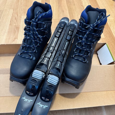 Lundhags skridskoskenor i aluminium med svarta fästen. Utrustade med justerbara remmar med röd spänne för snabbfäste att fästa på skor eller kängor. Passar för långfärdsskridskoåkning längd på skenor är ca 48 cm