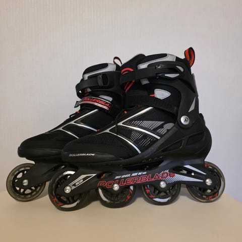 Storleken på dem är 37-40. Modellen har hårt skaft med justerbart spänne och snörning för stabil passform. Färgkombination i svart, grått och röda detaljer. Utrustade med fyra hjul på rad och broms bak. Passar för rullskridskoåkning och inlines på asfalt och andra jämna underlag.