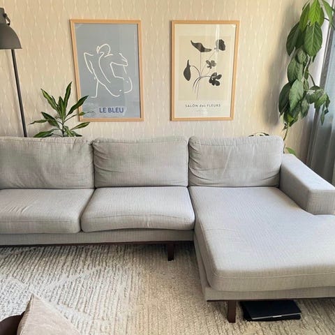 2,5 sits soffa med divan, höger sida.