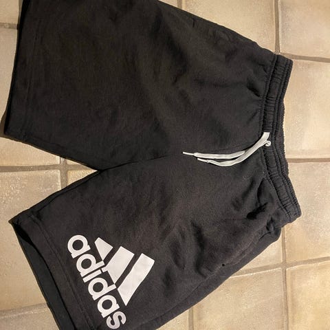 Svarta träningsbyxor från Adidas med klassiska vita ränder på sidorna.