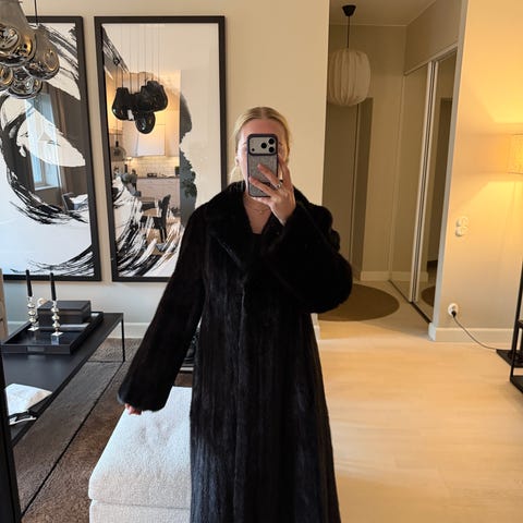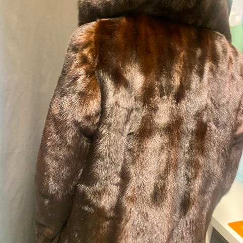 Pälskappa i mycket gott skick. Storlek S/M. Varm. Diskret knäppning. Mink. Vet inte exakt hur gammal den är men att den är gammal.