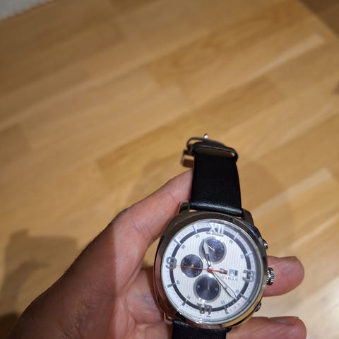 Klockan är i normalt bruksskick med synligt slitage på länken. Glas och urtavla i fint skick.