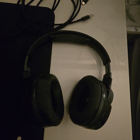 Headset från SteelSeries. Riktigt bra ljud och mic. Trådlösa och har 2 batterier man kan byta (hot swap) så man kan köra på kontinuerligt.