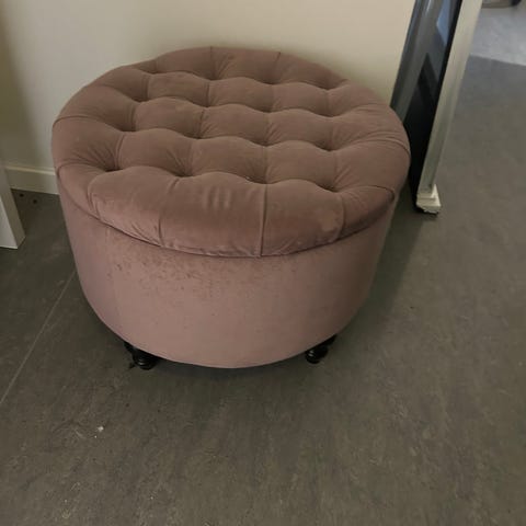 Grå sittpuff i sammetsliknande tyg. 78cm i diameter.