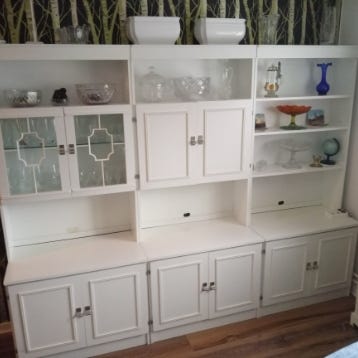 Helt ok skick förutom fuktfläck vid barskåpsdelen, se bild. (Går säkert att behandla)