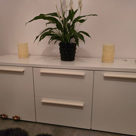 Trevlig och lättplacerad. Tre separara delar, i samma serie, två hyllor och en tvbänk. Jättebra skick.