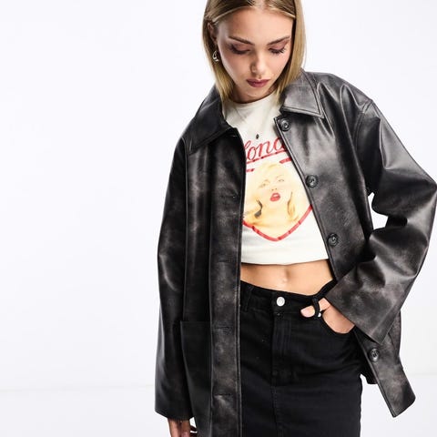 Säljer en Mango (MNG) läderjacka i storlek XS.