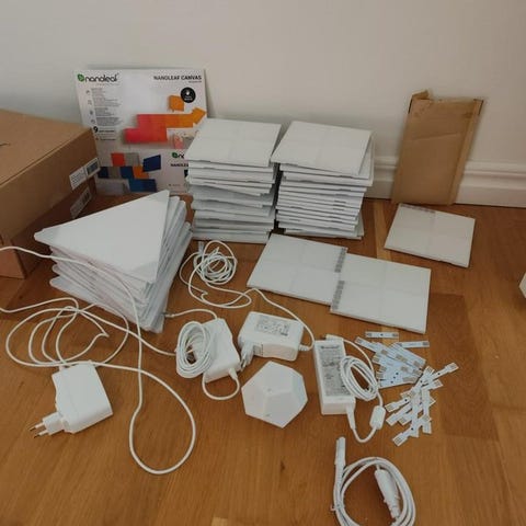 Säljer ett helt nytt Nanoleaf Shapes Triangles starter kit med 15 st triangelformade RGB LED-ljuspaneler för väggmontering. Kan kombineras i olika mönster och styras via app, touchkontroll och röstassistenter. Går att expandera med fler paneler om man önskar. Kompatibel med Apple HomeKit, Google Assistant, Amazon Alexa och SmartThings. Lämplig för dekorativ belysning i exempelvis vardagsrum, sovrum eller spelhörna. Nypris 2500kr+. Kvitto finns.