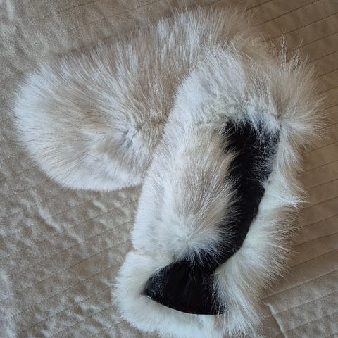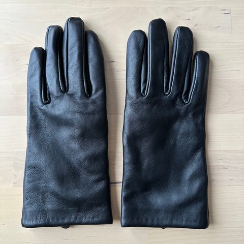 Fårskinnsfodrade tumvantar av skinn ( då jag inte är någon expert kan jag inte vara riktigt säker men de luktar och känns som skinn iaf ) som jag fick av min mor och bara använt en gång då de är aningen för små, jag har storlek 8 och handskarna är 7,5 i storlek, så de har legat oanvända i hallskåpet och är i mycket fint skick. Passar därför på att sälja dom nu då vintern fortfarande har oss i sitt grepp. Förhoppningsvis kommer de till bättre användning någon annanstans.