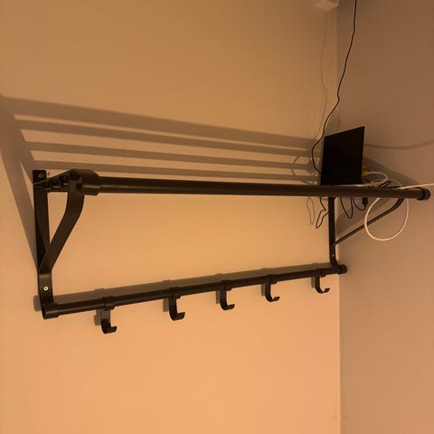Finns en svag färgning på övre delen av räcket som man hänger galgar på, men inget som syns alls när man använder den.