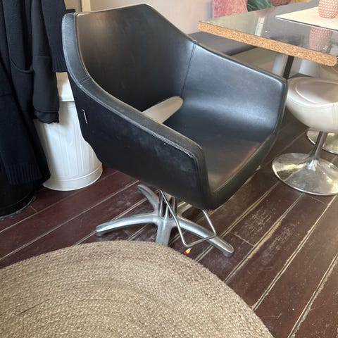 Venture Home frisörstol i svart konstläder med kromade detaljer. Stolen har fotstöd, armstöd och rund fot i metall som ger stabilitet. Sits och rygg är vadderade för ökad komfort. Passar för användning i salong eller hemmabruk som barberar- eller frisörstol.