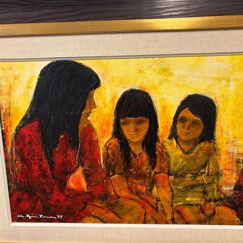 Akvarell tavla med kustmotiv som föreställer strand, hav och bebyggelse i dämpade färger. Verket är inramat med passepartout och enkel ram. Baksidan har upphängningsanordning och en fastsatt tidningsartikel. Passar som väggdekoration i hem eller kontor.