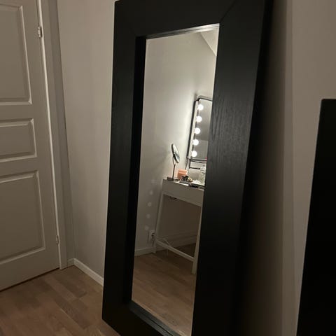 Fristående spegel med ställning som kan placeras direkt på golvet eller om så önskar kan den hängas på väggen.