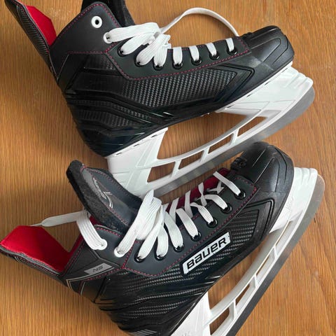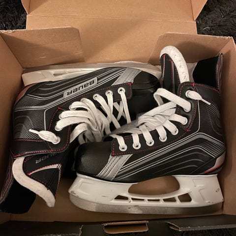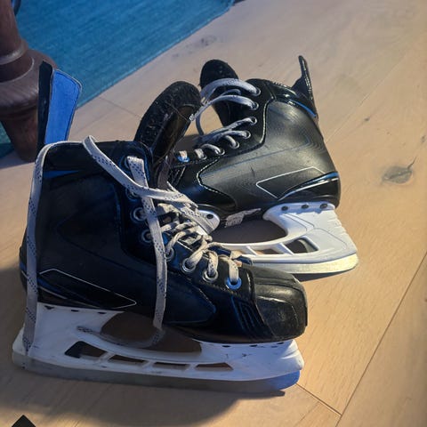 CCM ishockeyskridskor för barn i storlek 38 (EU). Skridskorna är svarta med vita detaljer och vita snören. Modellen är avsedd för ishockey och har skena i metall samt vadderad insida för ökad komfort. Passar för barn eller juniorer med skostorlek 38 som behöver skridskor för ishockeyspel eller träning.