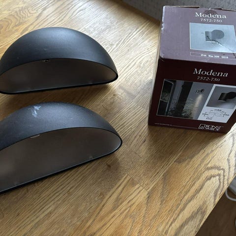 Två klassiska utomhusvägglampor från Konstsmide, modell Gnosi Lyktan, i vit metall med glas och två glödlampor på 40W och 60W. Perfekt för att lysa upp entrén eller trädgården med en stilren och tidlös design.