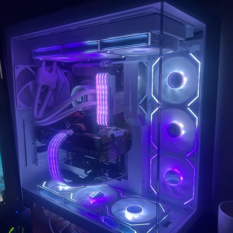 MSI B650 Gaming Plus Wifi stationär dator med komponenter för spel och krävande användning. Moderkortet är MSI B650 Gaming Plus Wifi för AMD Ryzen-processorer. Datorn är utrustad med RGB-belysning i chassi och kylning. På bilderna syns bland annat ett Gigabyte GeForce RTX 5070 grafikkort och ett Seasonic Focus GX-750 nätaggregat på 750 W med 80 Plus Gold-certifiering. Lämplig som stationär dator för spel, multimedia och allmän användning. Corsair vengence cl30 6000mhz ddr5 ram minnen.