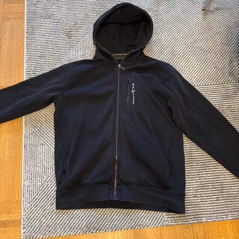 Tröjan är i mycket fint skick, väl omhändertagen och utan skador eller synligt slitage. Alla dragkedjor fungerar som de ska.