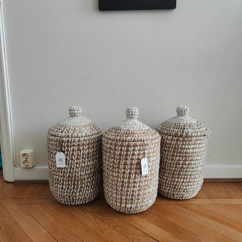 IKEA korgar förvaring i brun flätad design. Rektangulära korgar med handtag på kortsidorna för enkel utdragning. Passar för förvaring i hyllor, garderober eller på öppna ytor. Tillverkade i flätat material med genomsläpplig botten och sidor som ger god överblick över innehållet.