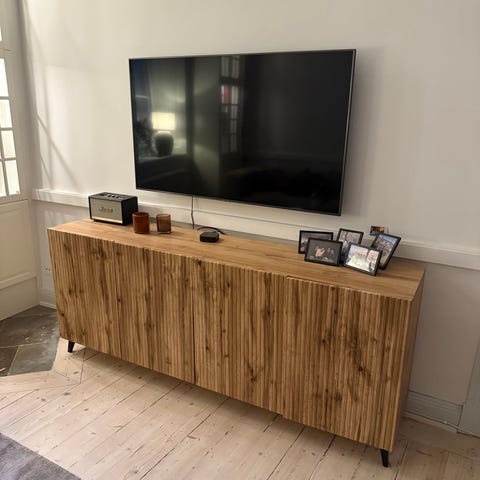 Skjutdörrar så man kan ha hyllorna öppna var man vill