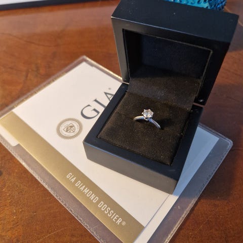 Diamanten är satt i ett hänge gjort av guldsmed, hänget är använt ett fåtal gånger som nytt.
