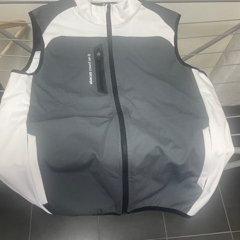 Peak Performance väst i beige och vitt. Ärmlös modell med genomgående dragkedja framtill och ståkrage. Kontrastkant vid ärmöppningar och dragkedja. Logotyptryck på bröstet och längs ryggen. Passar som ytterlager vid träning eller vardagsbruk i mildare väder.
