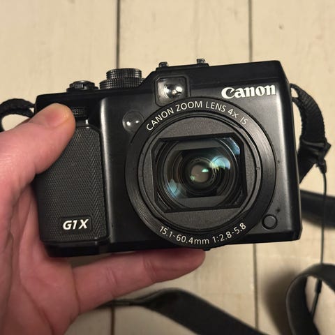Canon PowerShot G9 X mark II kompaktkamera. Riktigt schysst liten kompakt kamera med stor sensor och ordentligt objektiv. Perfekt för vardagsliv, resor och annat där en liten kamera är fördelaktigt! Den har använts sparsamt men har tyvärr suttit på hyllan ett bra tag nu vilket är varför den är till salu. Hoppas att den kan hitta ett bra nytt hem!